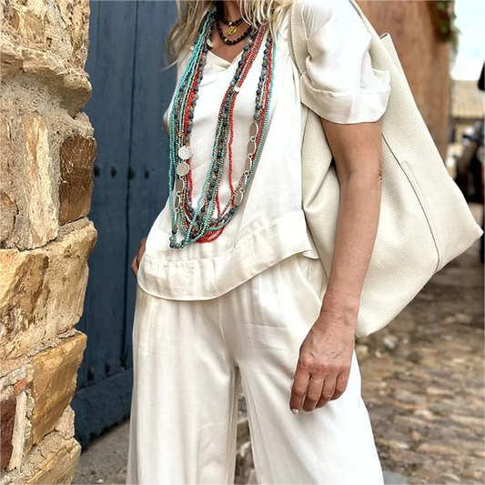 💝Топ с къс ръкав и широки крачоли, комплект от 2 части✨