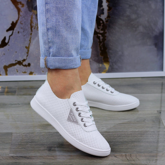 MODNE BIAŁO SKÓRZANE TRAMPKI DAMSKIE DZIURKOWANE FASHIONS