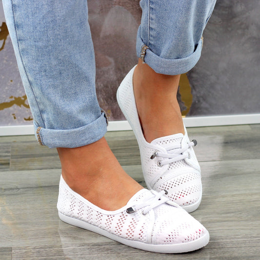 Białe Wygodne Koronkowe Trampki Tenisówki Damskie WSUWANE NA GUMKĘ
