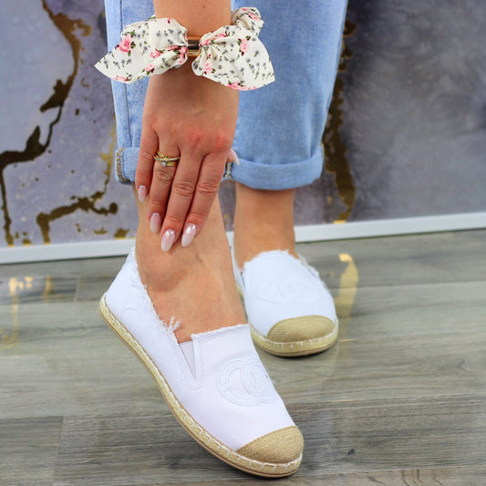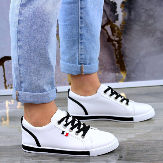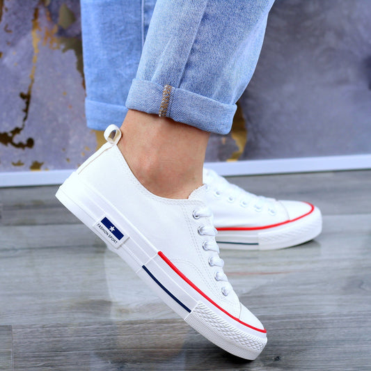BIAŁE GŁADKIE MATERIAŁOWE TRAMPKI DAMSKIE FASHION
