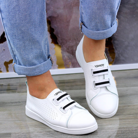 MODNE BIAŁE AŻUROWE SKÓRZANE TENISÓWKI TRAMPKI DAMSKIE WSUWANE FASHIONS