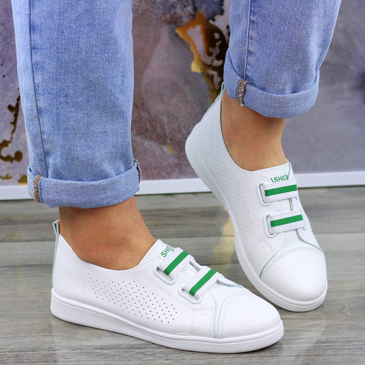 MODNE BIAŁE AŻUROWE SKÓRZANE TENISÓWKI TRAMPKI DAMSKIE WSUWANE FASHIONS green