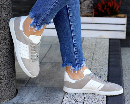 Szare tenisówki damskie sznurowane z paskami