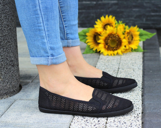 Czarne Wygodne Koronkowe Trampki Tenisówki Gumki