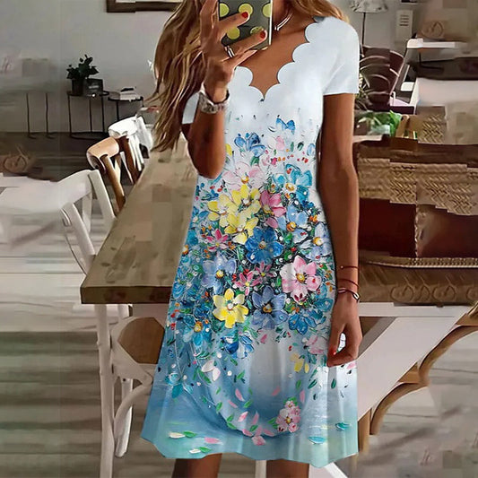 Sukienka z krótkim rękawem z nadrukiem w kształcie litery V