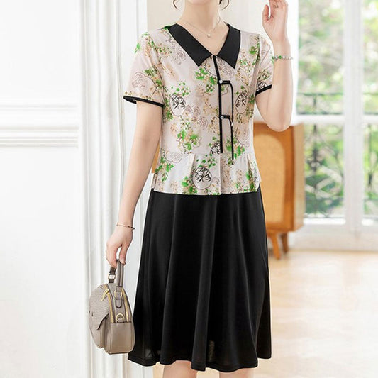 Дамска рокля с принт с дълбоко V деколте и къс ръкав