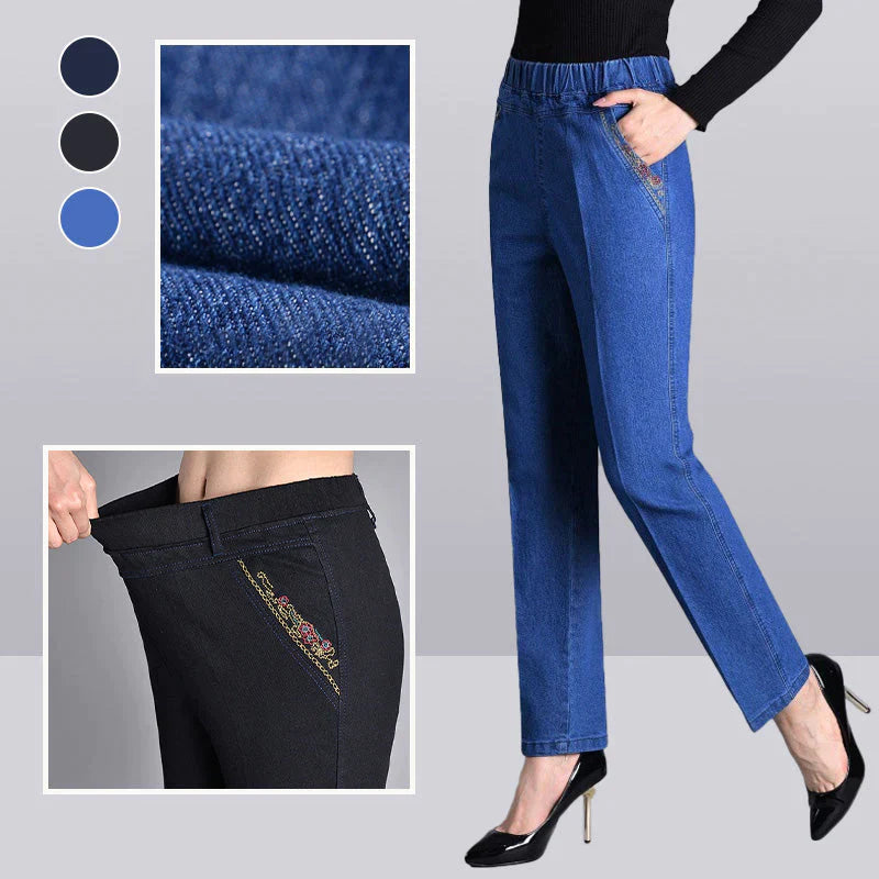 ✨Dżinsy damskie z bocznymi kieszeniami i elastycznym paskiem w talii