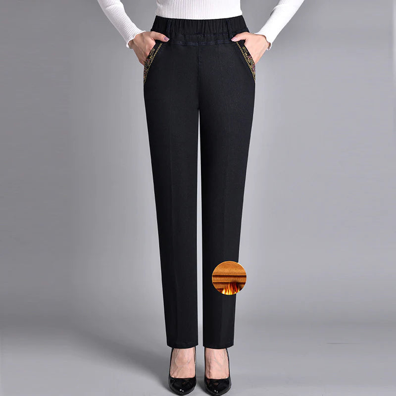 prostą, szeroką nogawką - Dobrze wykonany, aby ukryć nadmiar tłuszczu w talii, prosty krój wydłuża linię nóg.