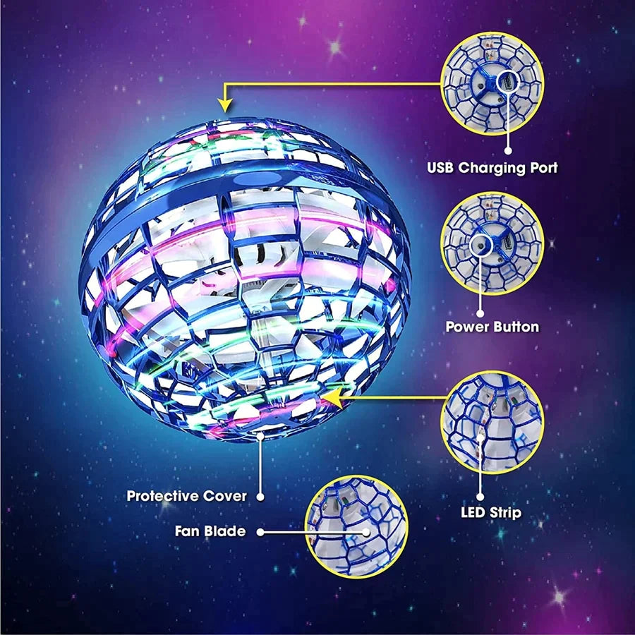 • Hoverball to zabawka roku!  Posiada aerodynamiczną zamkniętą kulę, która pozwala mu bez wysiłku ślizgać się w powietrzu, co zapewnia niezwykle zabawne i uzależniające doświadczenie. Podrzuć go i patrz  , jak lata, unosi się, szybuje i wspina się,  zanim w magiczny sposób powróci do Twojej dłoni!