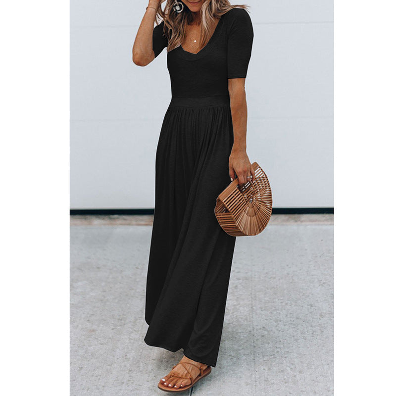 2023 nowy długi kombinezon z okrągłym dekoltem i krótkimi rękawami
