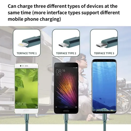 Съвместимост: 3-в-1 3-ампера прибиращ се кабел за зареждане, съвместим с iPad, Pad, Pod/Nano 7 Replacement/Samsung Galaxys22/s21/s20/s10/s9/s8/, Huawei, HTC, LG, Sony, Google Pixel и други Android устройства, за зареждане на повечето мобилни телефони.