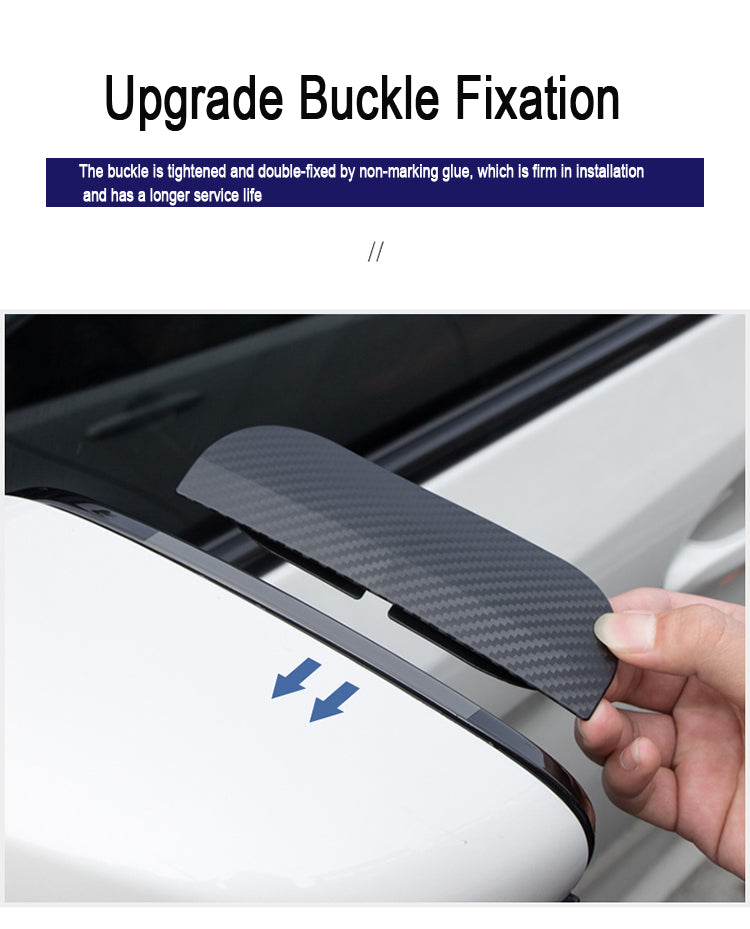 2 броя водоустойчиви платна с нови катарами, със специално лепило за помощни автомобили, безопасни, прости и здрави. Продуктът е изработен от екологично чист материал от въглеродни влакна. Черният цвят може да се съчетае с огледала от всякакъв цвят. След монтаж, няма да повлияе на сгъването на огледалото за обратно виждане и няма да блокира видимостта.