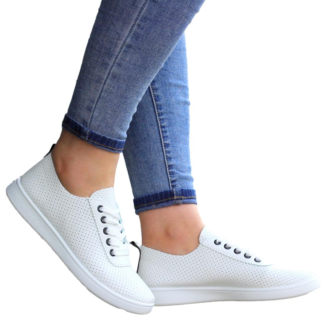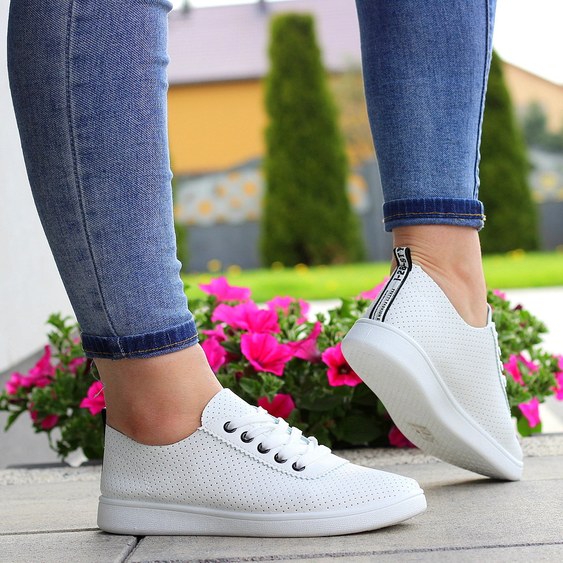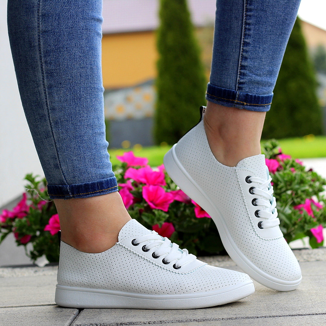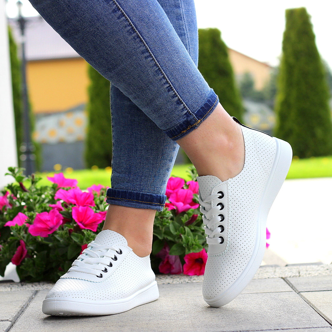 BIAŁE SKÓRZANE TENISÓWKI TRAMPKI DAMSKIE W DZIURKI Mils