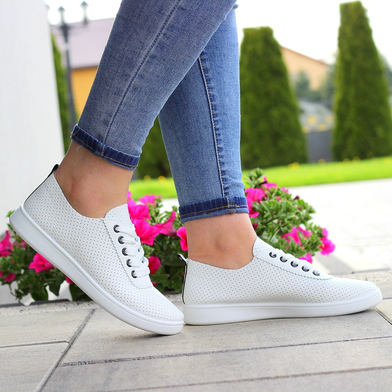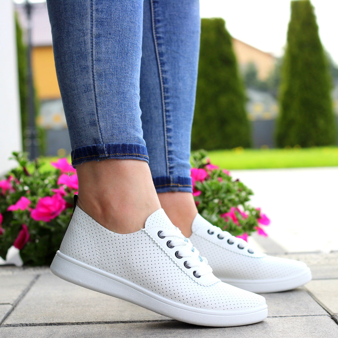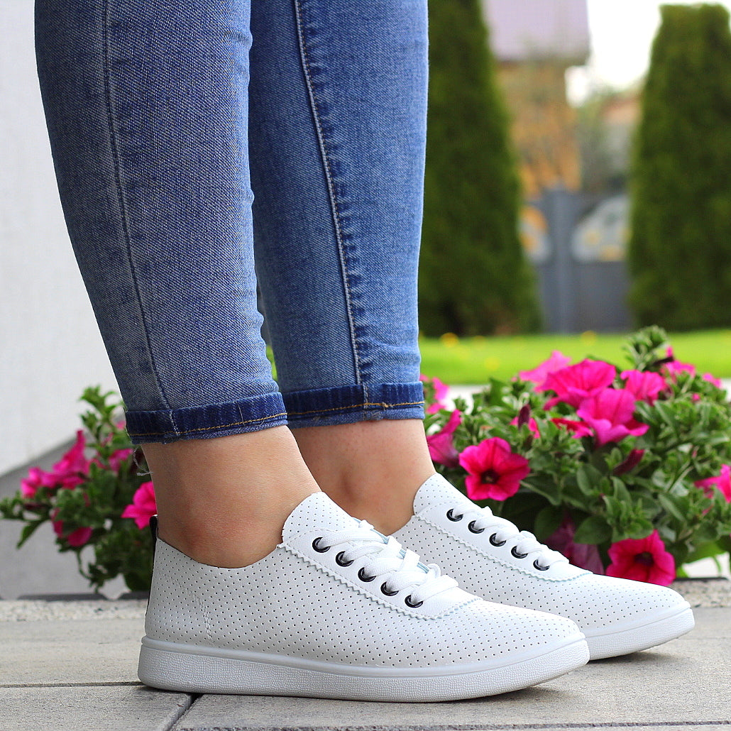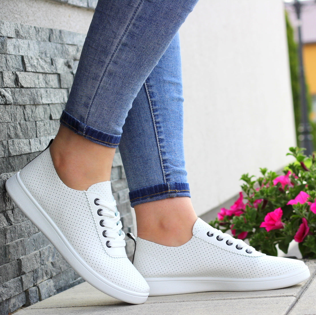 BIAŁE SKÓRZANE TENISÓWKI TRAMPKI DAMSKIE W DZIURKI Mils