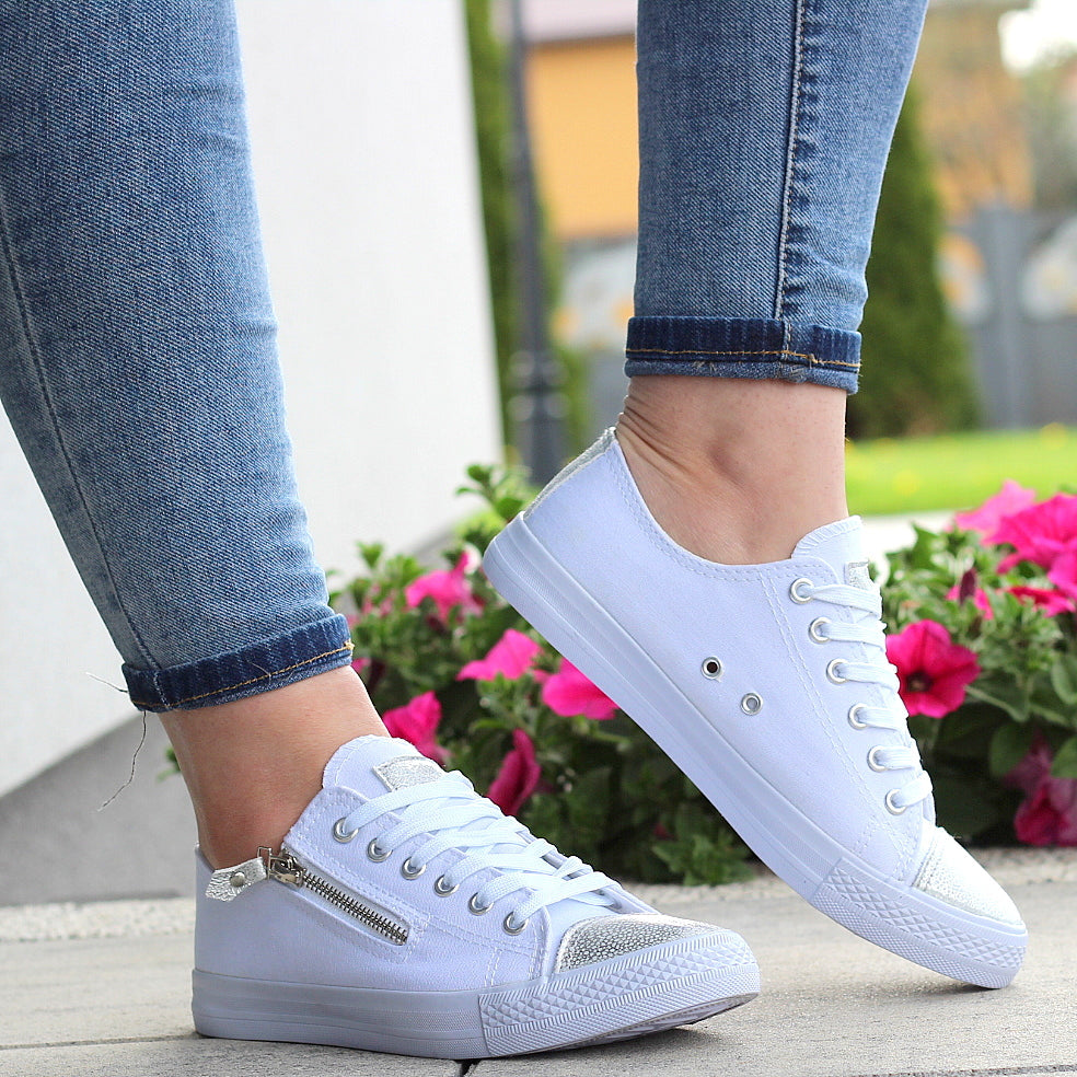 Białe miękkie tenisówki materiałowe slim suwaczek