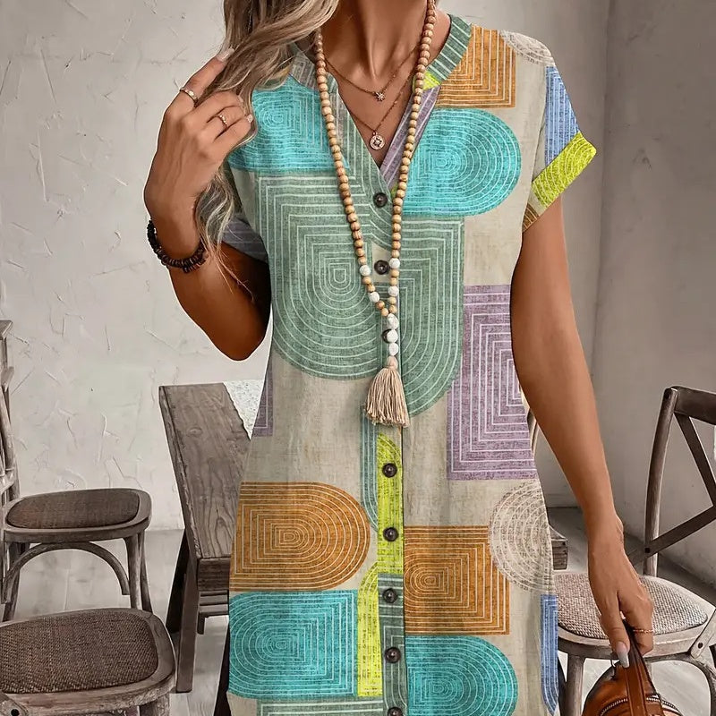 БЕЗКРАЙНА УНИВЕРСАЛНОСТ - Носете го с обувки на висок ток с каишки за откриване на галерия или със сандали за шикозен брънч. Графичният принт скрива гънки по време на пътуване, което го прави идеален за спонтанни приключения или елегантен преход от офис към вечерно облекло.