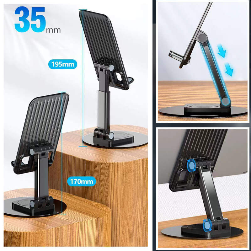 Uchwyt na telefon i tablet jest w pełni składany i łatwy do przenoszenia. Odpowiedni do pracy w domu, w biurze i na zewnątrz, co ułatwia pisanie i oglądanie wideo.