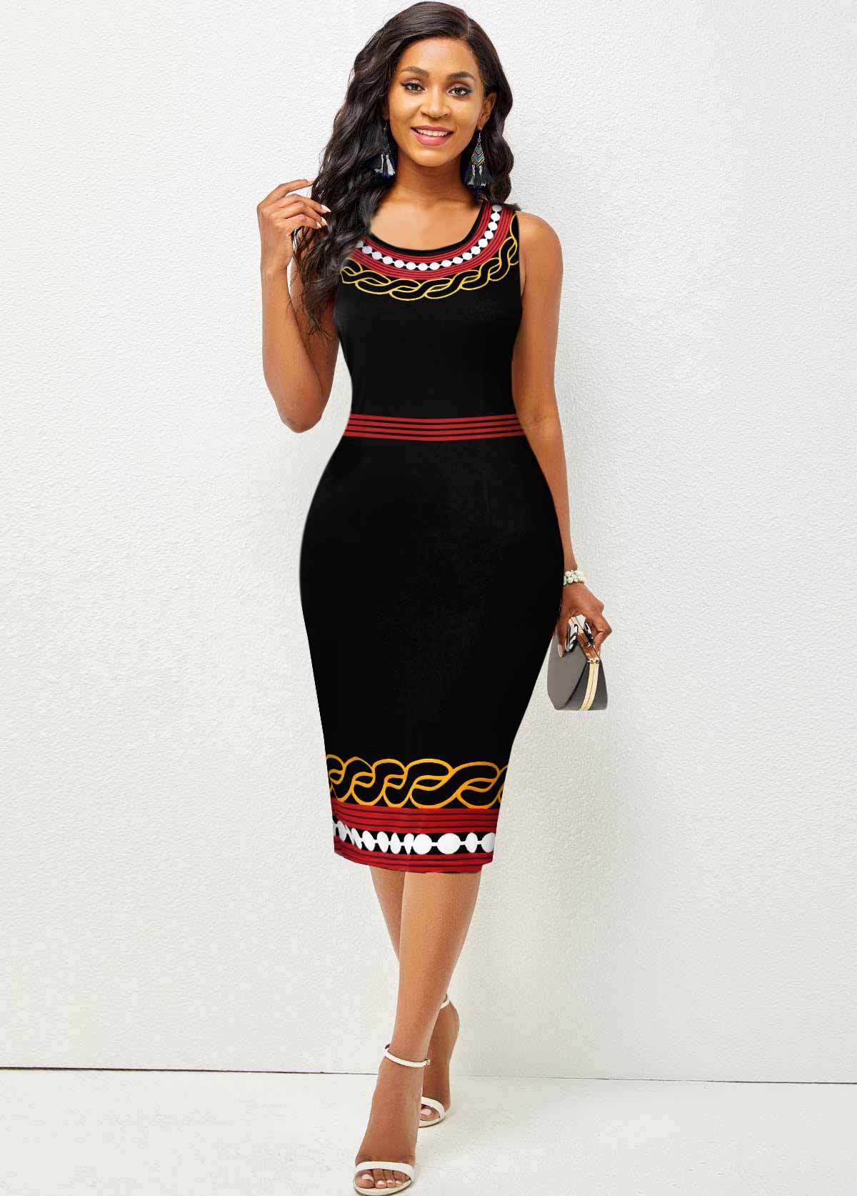 Drukowana sukienka z okrągłym dekoltem z krótkim rękawem