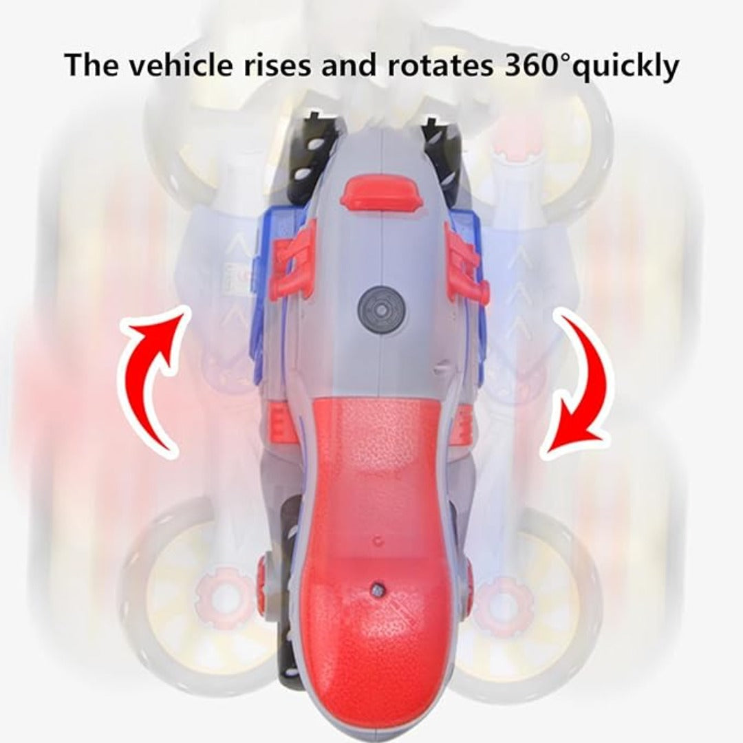 【360-градусово трансформиращо действие】: Гледайте със страхопочитание как този мотоциклет-играчка се трансформира и извършва спиращо дъха въртене на 360 градуса. Динамичният дизайн добавя допълнително вълнение към играта, като държи децата ангажирани и забавни.