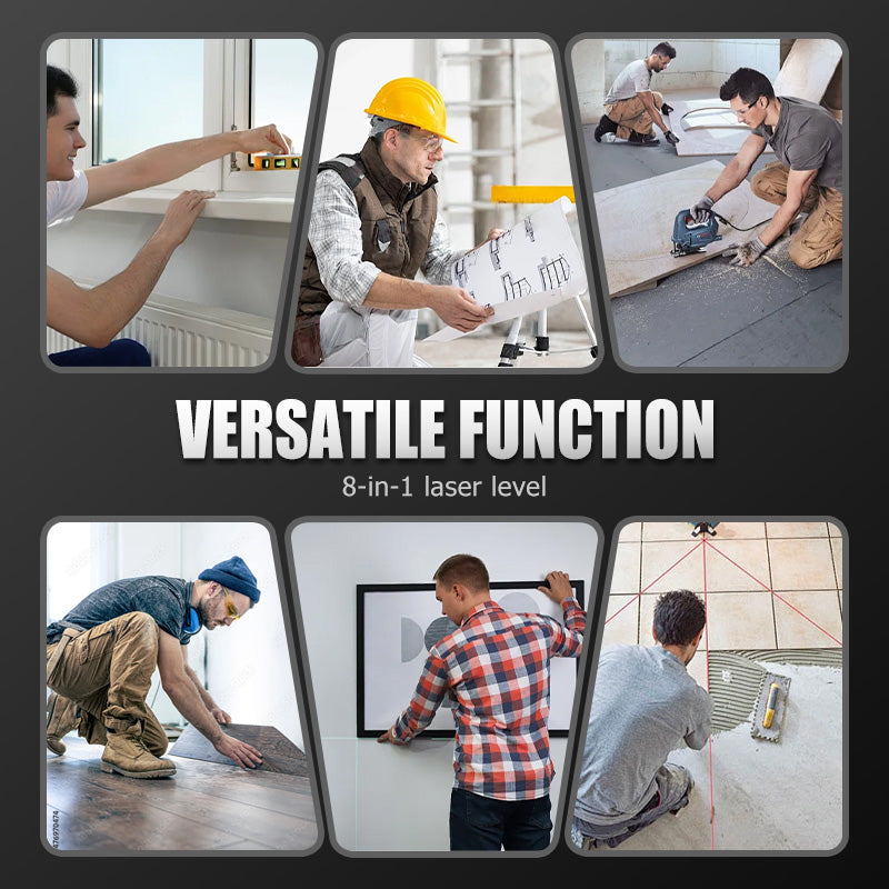 ИЗМЕРВАНЕ НА ГОЛЯМ ЪГЪЛ: Осигурява високопрецизни измервания с пълно ъглово покритие от 4×90°, което ви помага лесно да правите точни абсолютни или относителни ъгли и наклонни измервания във всякакъв сценарий.