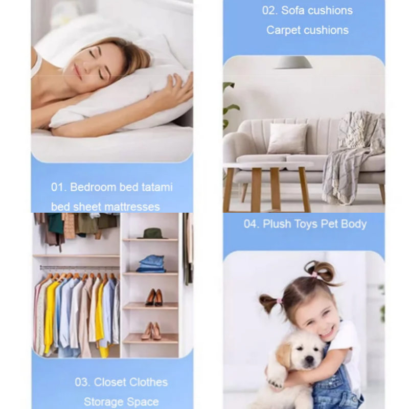ЕФЕКТИВНО ПРЕМАХВАНЕ НА ПРАХОВИ АКАРИ: Съдържа усъвършенствани активни съставки, които проникват дълбоко във влакната на тъканите, ефективно потискайки размножаването на прахови акари и убивайки бактериите. Вече не е нужно да се притеснявате за прахови акари и да се наслаждавате на по-комфортна и хигиенична среда на живот.