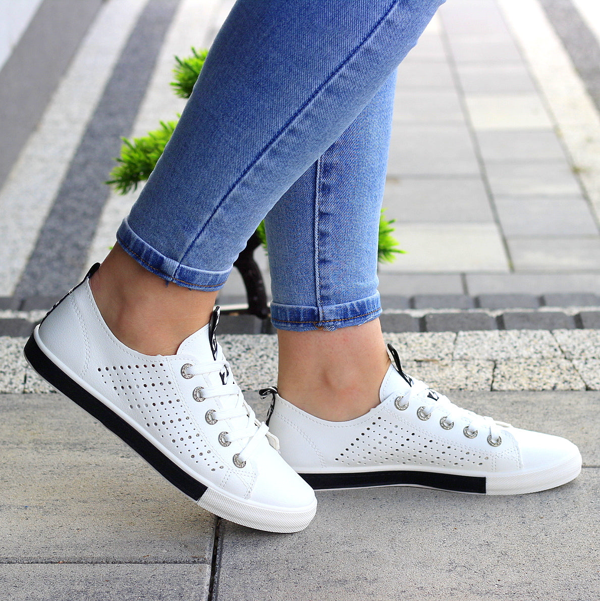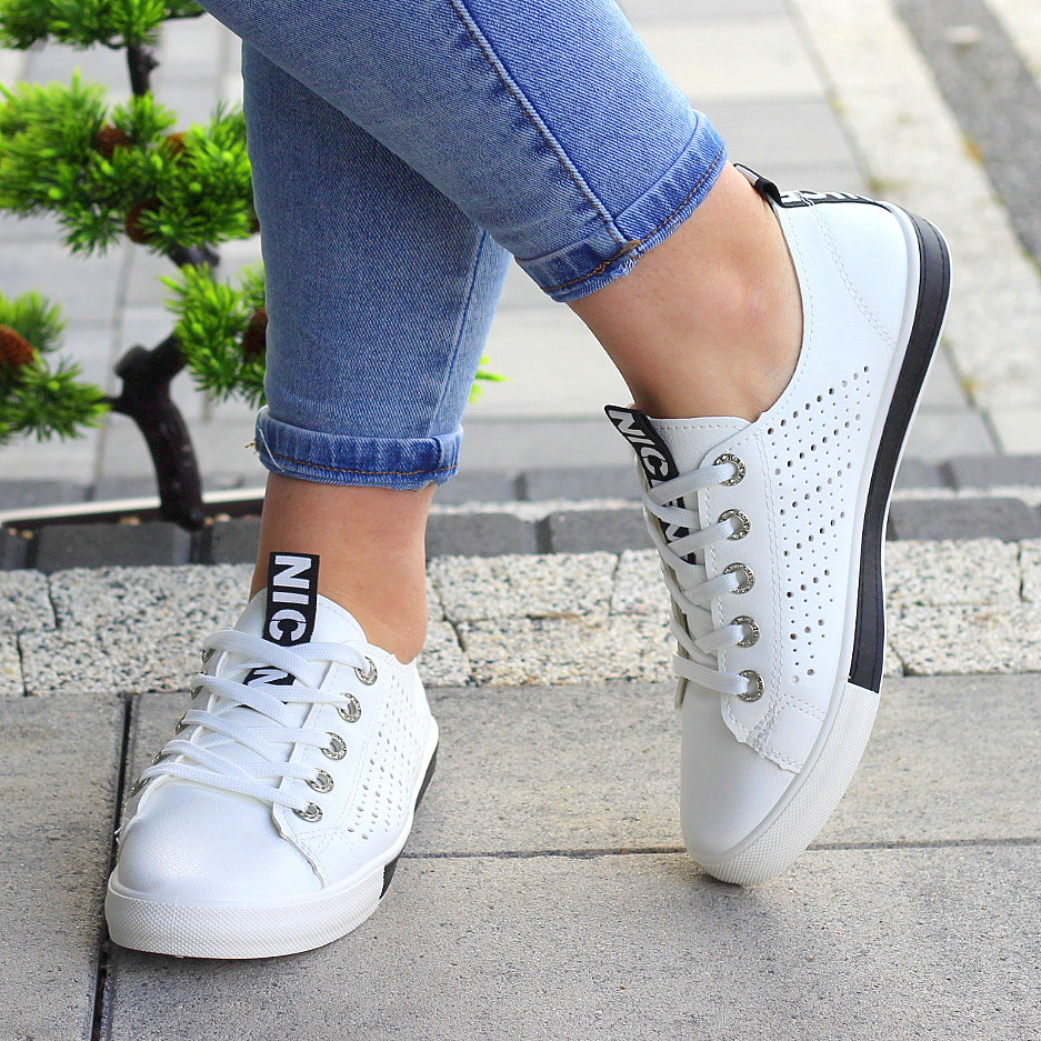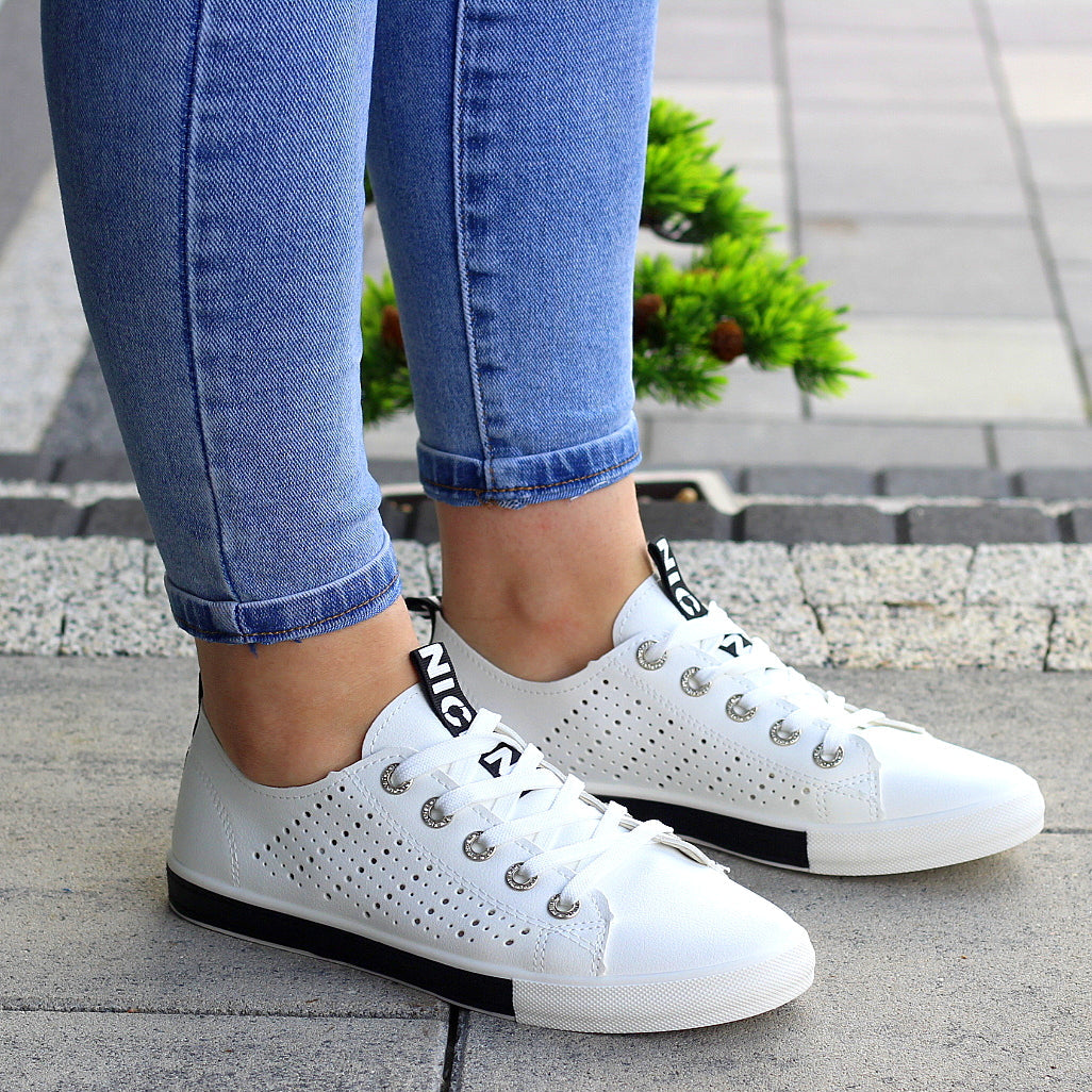 Białe trampki mięciutkie wsuwane slim na wygodnej podeszwie z ażurowym wzorem