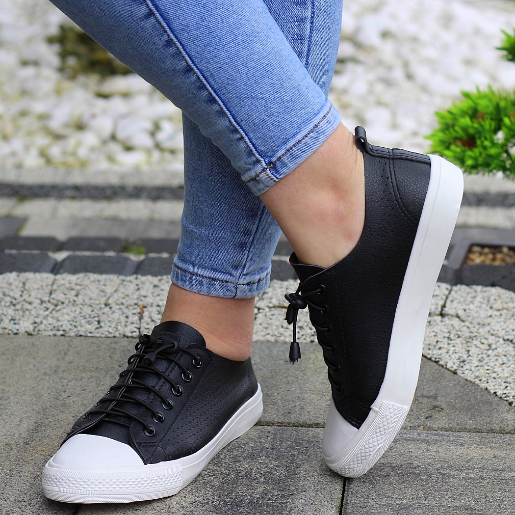 Czarne trampki w dziurki mięciutkie sznurowane slim na wygodnej podeszwie .