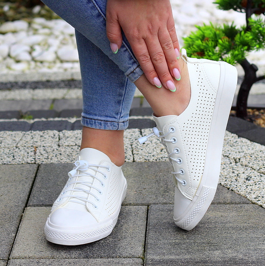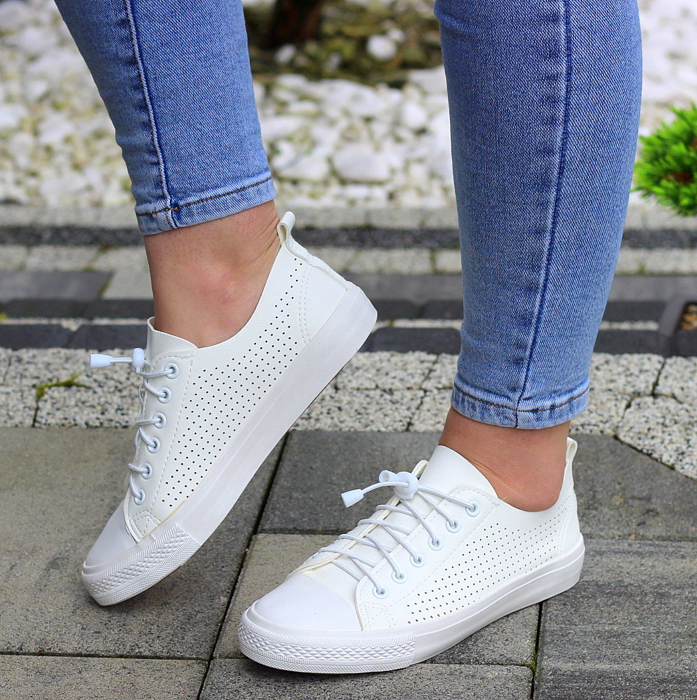 Białe trampki w dziurki mięciutkie sznurowane slim na wygodnej podeszwie .