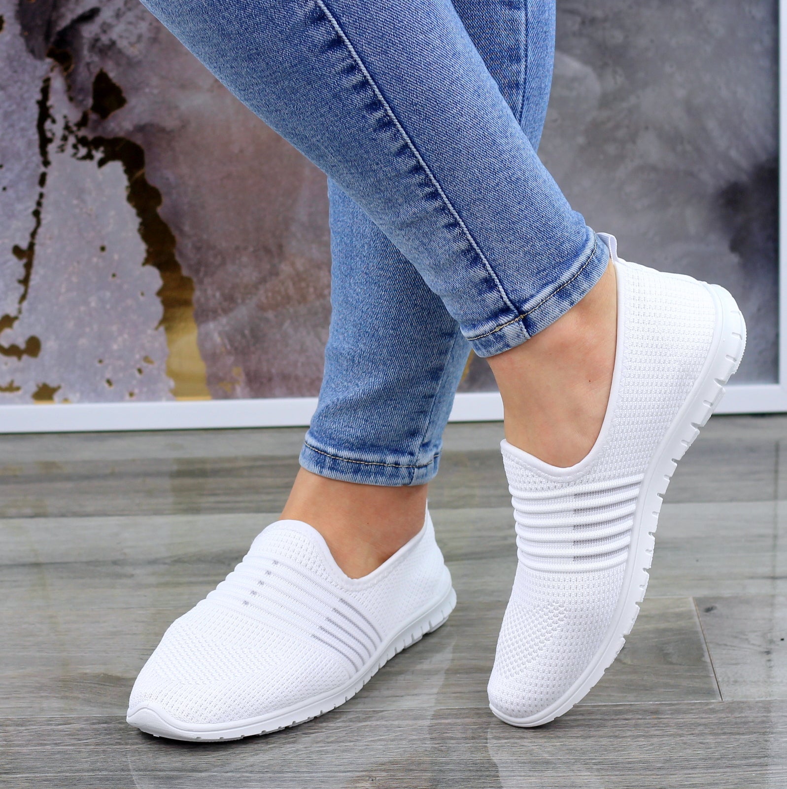 Białe trampki mięciutkie slim na wygodnej podeszwie wykonane z mięciutkiej elastycznej tkaniny.