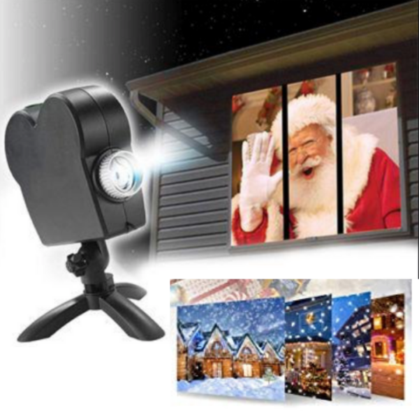 Projektor okienny na Boże Narodzenie i Halloween z 12 filmami