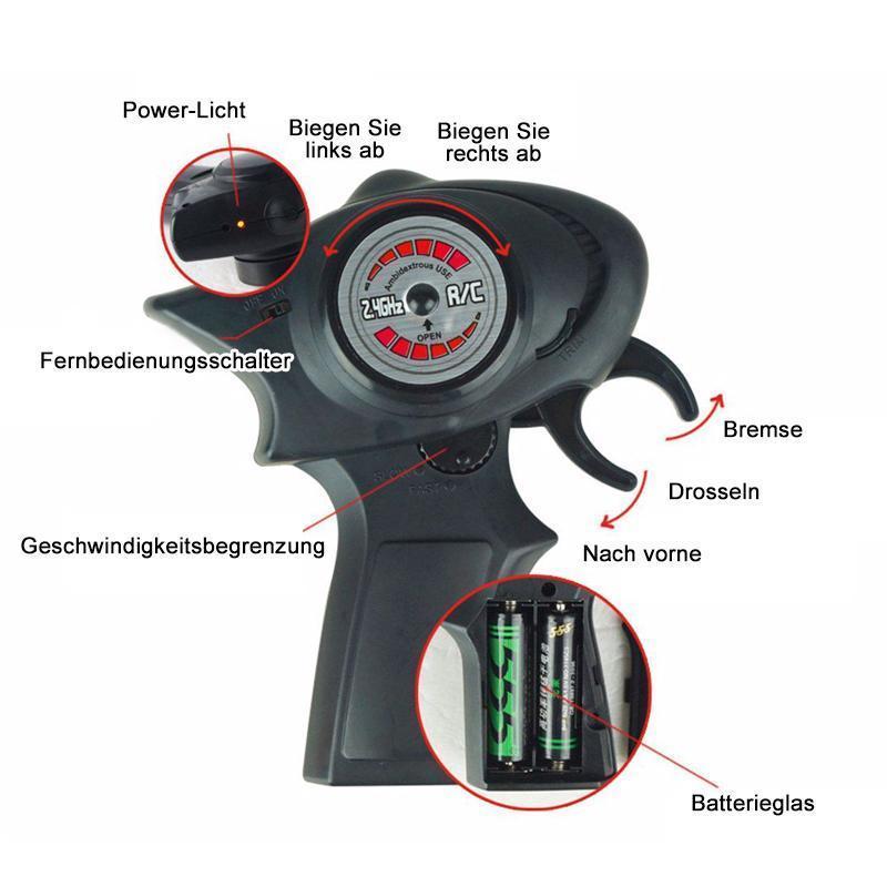 - Funktion: 2.4G Fernbedienung, vorwärts und rückwärts, links und rechts, super crashfähig, Scheinwerfer mit coolen Lichtern