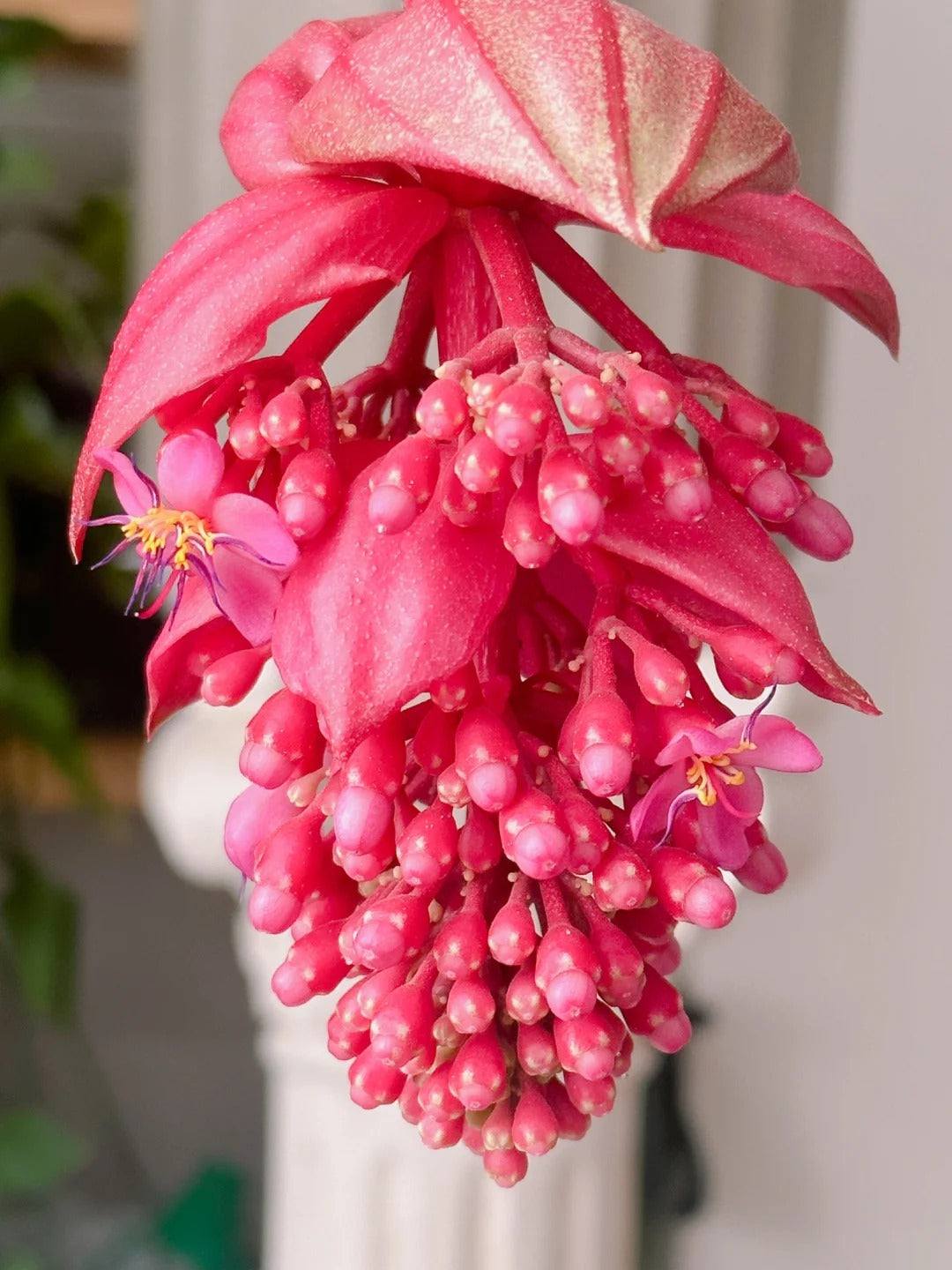 🌺 Впечатляващ цъфтеж : Създава живи, висящи гроздове от розови цветове, наподобяващи нежни гроздове.🌱 Екзотична привлекателност : Добавя луксозна, тропическа атмосфера към вътрешни или външни пространства.☀️ Обича ярка светлина : Вирее на ярка, непряка слънчева светлина или частично засенчени външни условия.🪴 Идеално за контейнери : Идеално за саксии, висящи кошници или като акцентно стайно растение.🌿 Целогодишен интерес : Гланцовата вечнозелена листна маса гарантира красота, дори когато растението не цъфти.