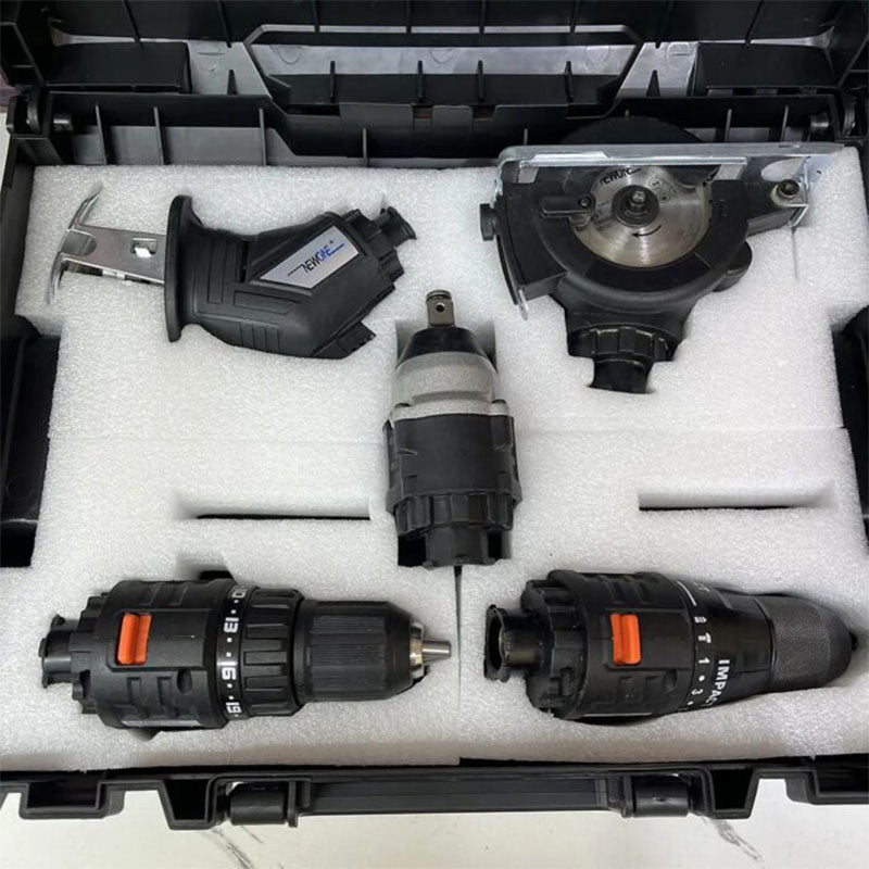 Представяме ви нашия комплект домакински инструменти 10-в-1, перфектният партньор за всичките ви начинания като „направи си сам“ и дървообработване. Този изчерпателен комплект включва разнообразие от взаимозаменяеми глави за инструменти, включително свредла, триони и други, което ви дава несравнима гъвкавост за справяне с широка гама от домакински проекти.